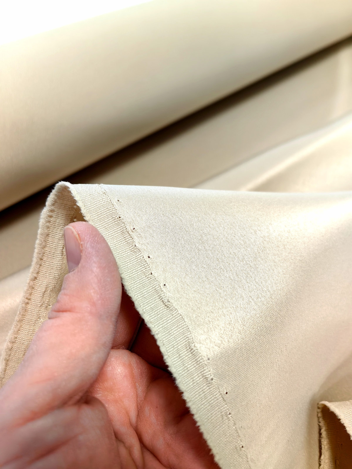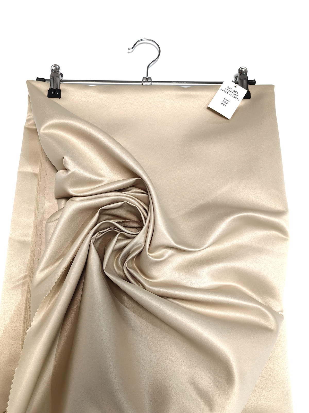 Američki saten klasični boja Bež ili Mat saten savršeno drži oblik, ima mat površinu, koju karakteriše visoka otpornost na habanje. Ovaj saten je gust, stabilan u obliku, ne sadrži likru, zbog čega se ne rasteže. Ne prosijava se. Nije skup. Koristi se u šivenju proizvoda koji zahtevaju zadržavanje oblika.