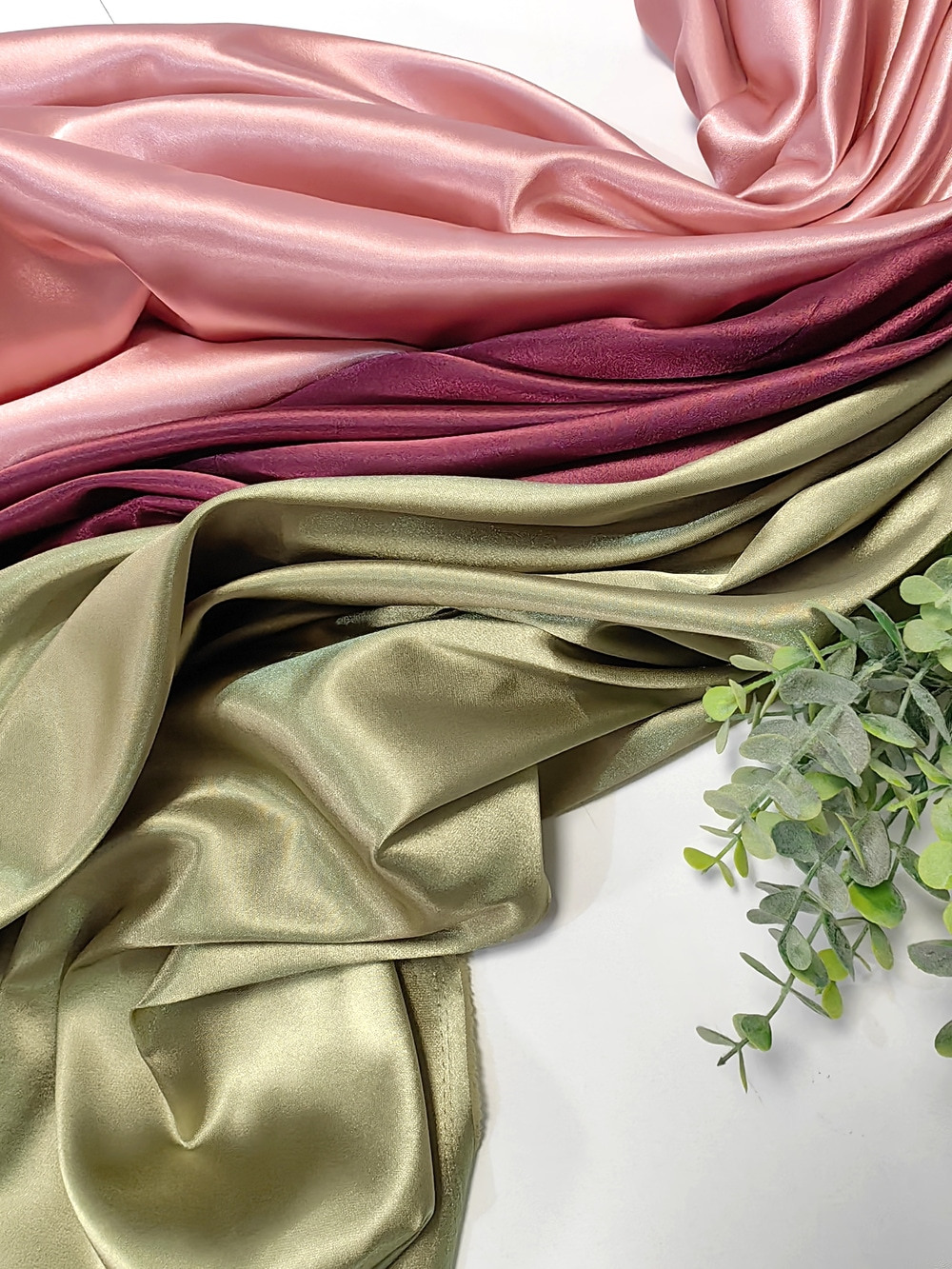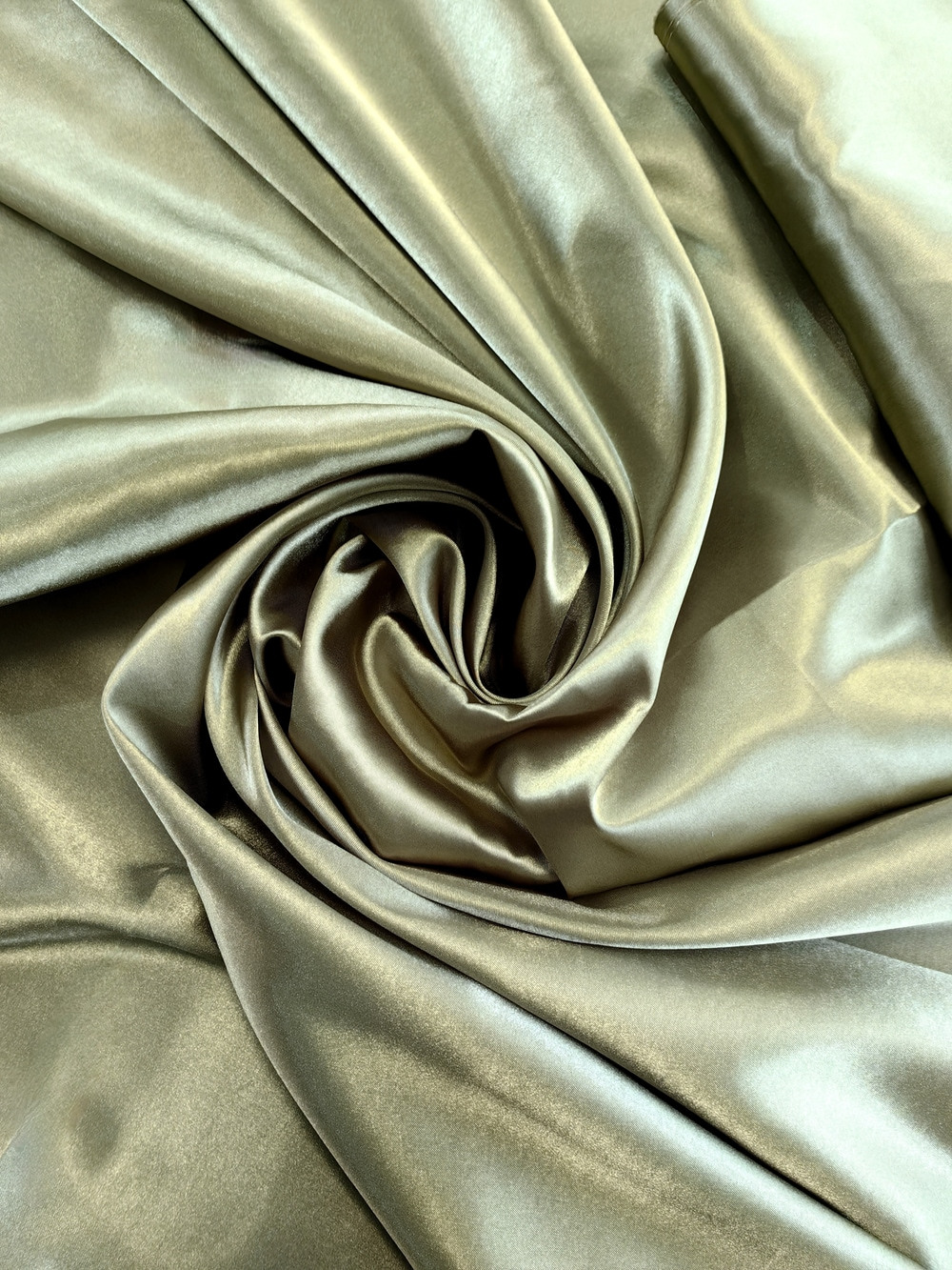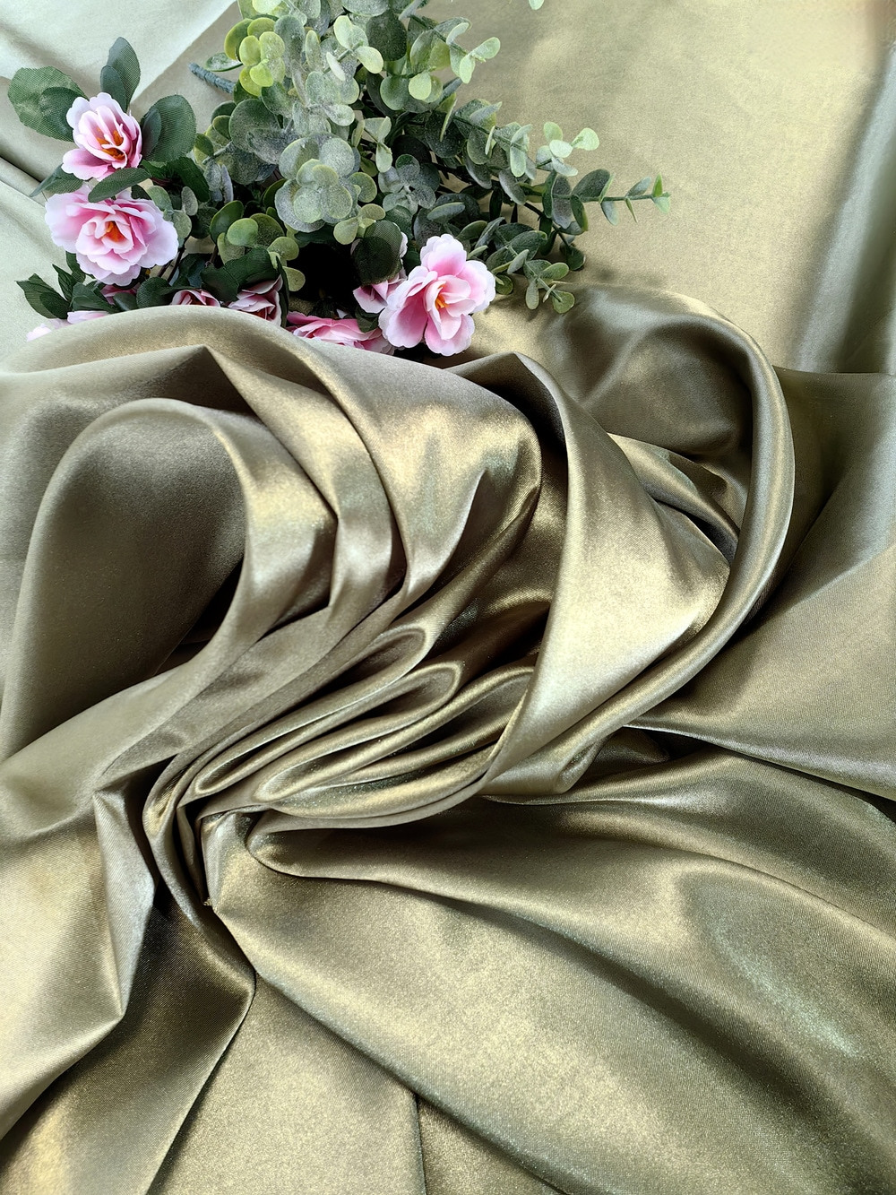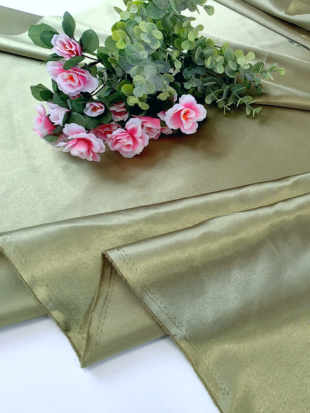 Saten Kristal boja Maslinasto Zelena je lagan, tanji saten sa lepim sjajem. Ali mat je sa druge strane. Nije providan. Ovaj saten je jeftin, ali dosta je kvalitetan. Ne ima likre u sastavu.