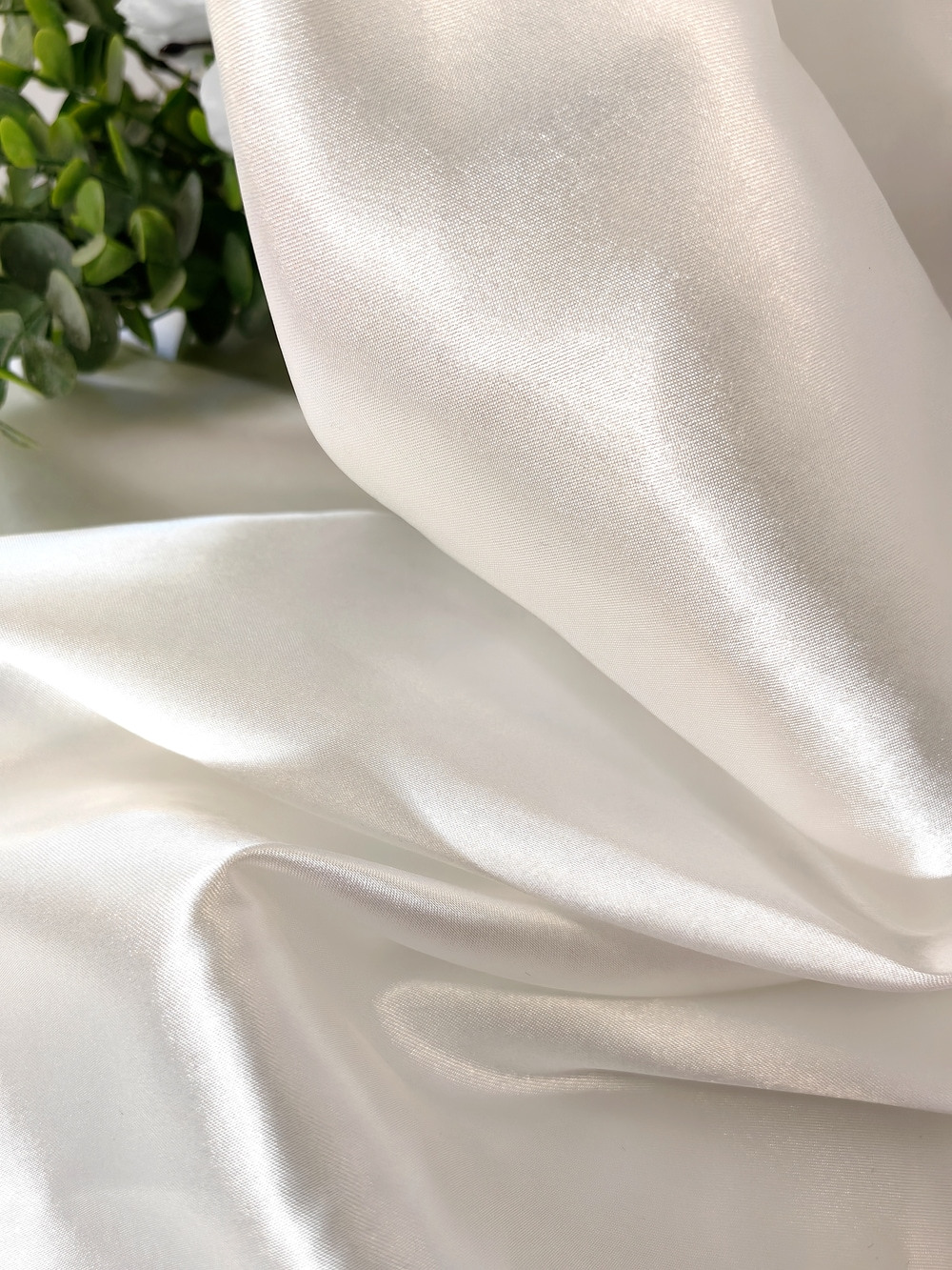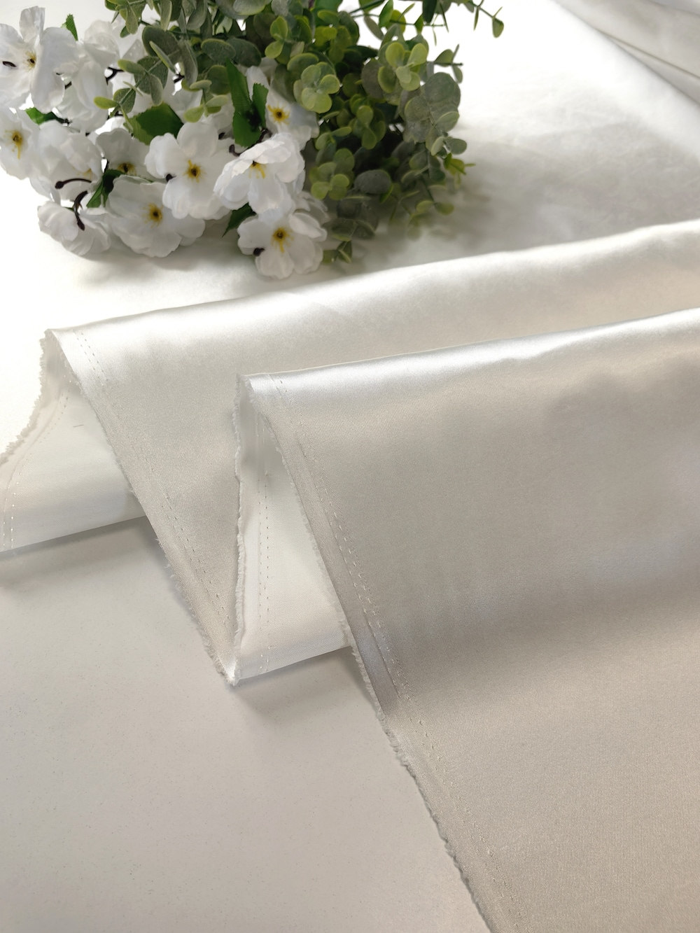 Saten Kristal boja Prva do Bele je lagan, tanji saten sa lepim sjajem. Ali mat je sa druge strane. Nije providan. Ovaj saten je jeftin, ali dosta je kvalitetan. Ne ima likre u sastavu.
