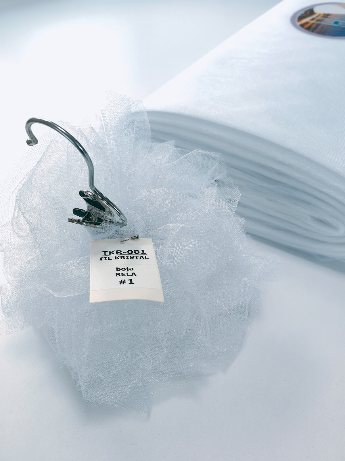Til Kristal boja Bela upadljiv, privlačan, sa primetnim kristalnim sjajem. Savršeno drži oblik, nje skup. Najviše se koristi za dekor venčanja, proslava i automobila, za kostime, maskenbal, baletske pačke. Takođe se koristi za donje suknje ispod teških tkanina.