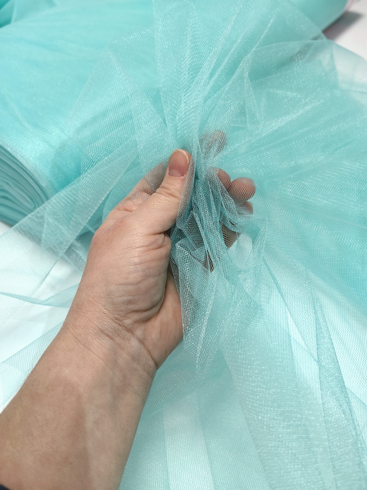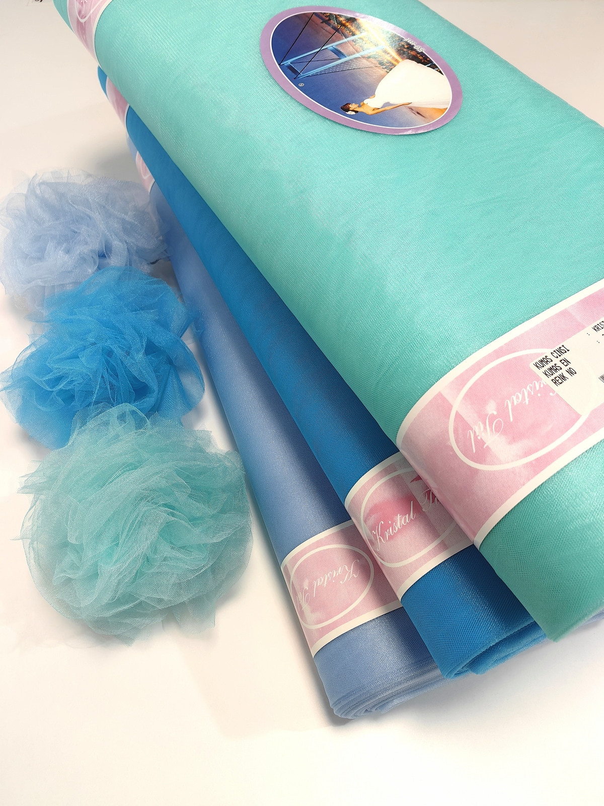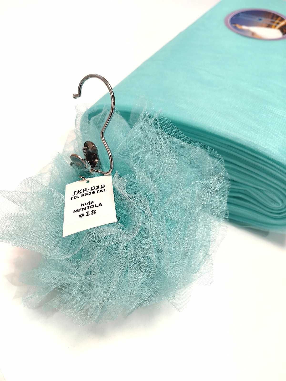 Til Kristal boja Mentola upadljiv, privlačan, sa primetnim kristalnim sjajem. Savršeno drži oblik, nje skup. Najviše se koristi za dekor venčanja, proslava i automobila, za kostime, maskenbal, baletske pačke. Takođe se koristi za donje suknje ispod teških tkanina.