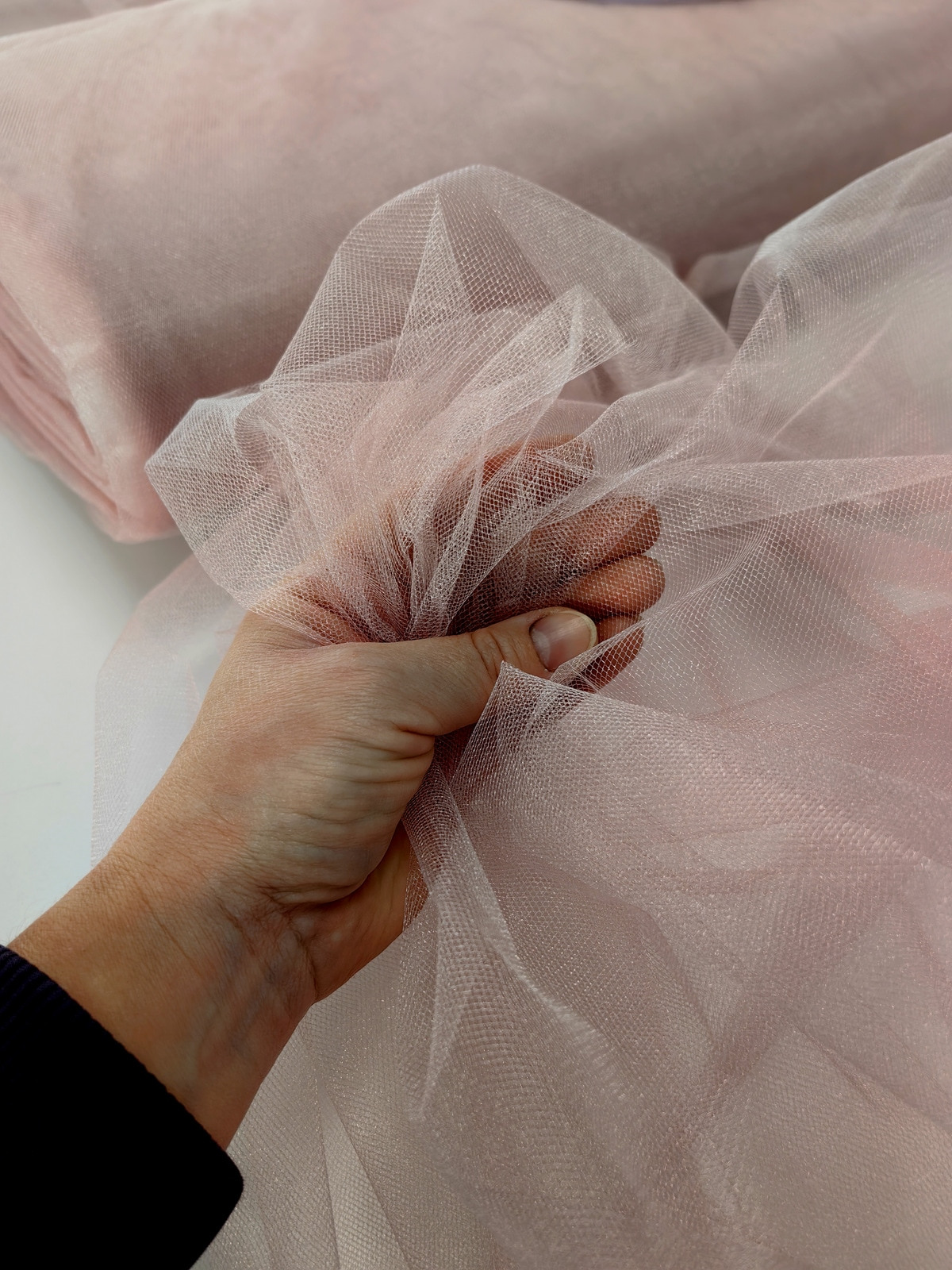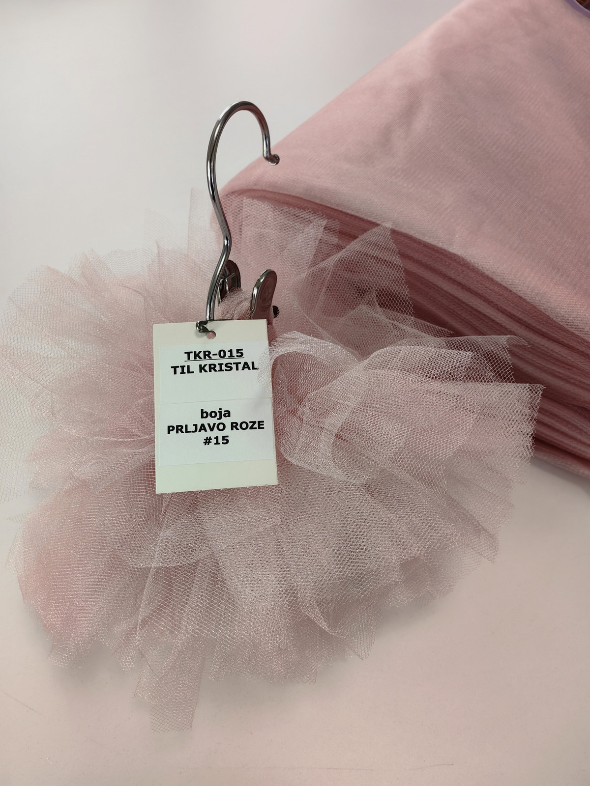 Til Kristal boja Prljavo Roze upadljiv, privlačan, sa primetnim kristalnim sjajem. Savršeno drži oblik, nje skup. Najviše se koristi za dekor venčanja, proslava i automobila, za kostime, maskenbal, baletske pačke. Takođe se koristi za donje suknje ispod teških tkanina.