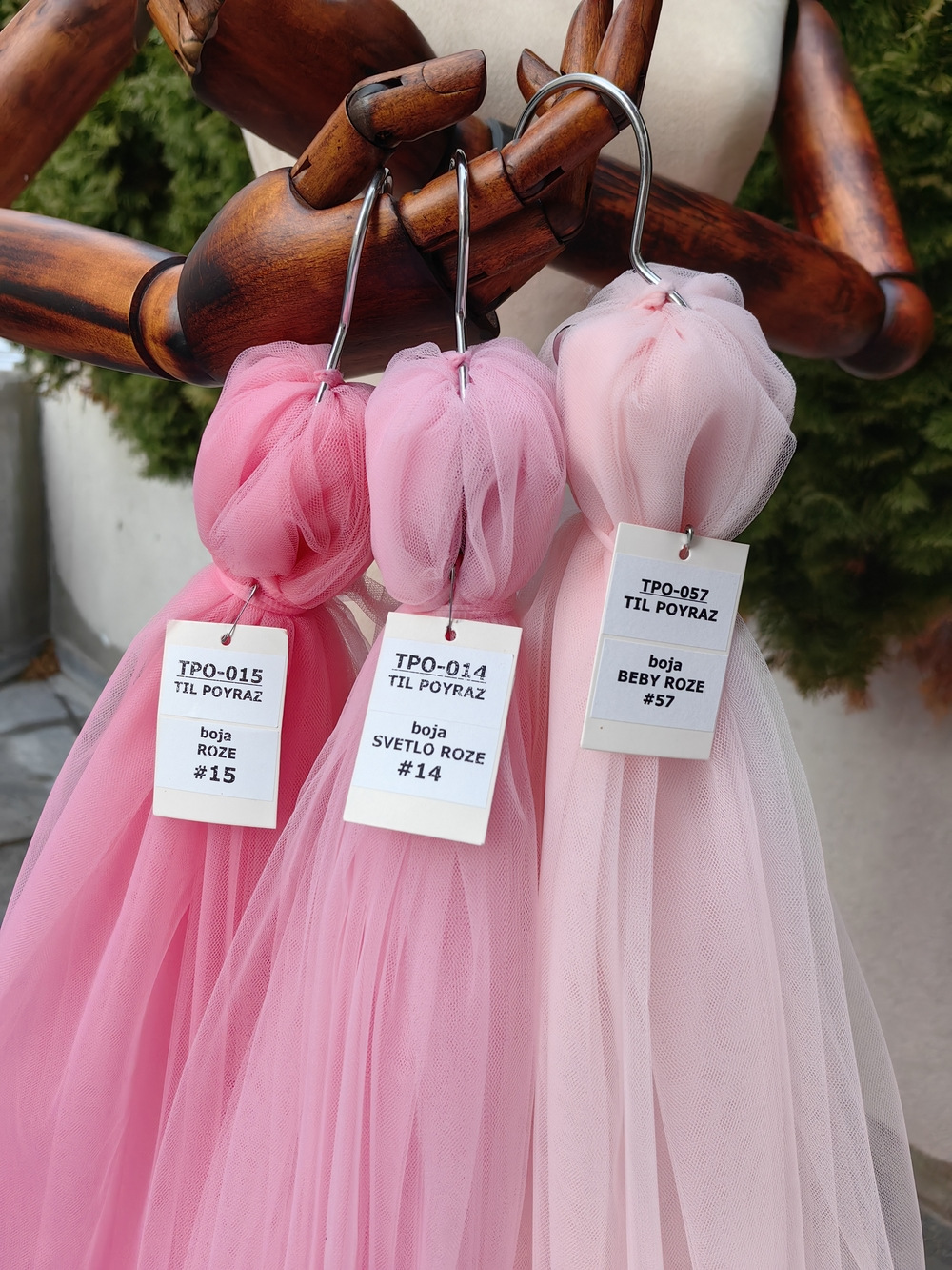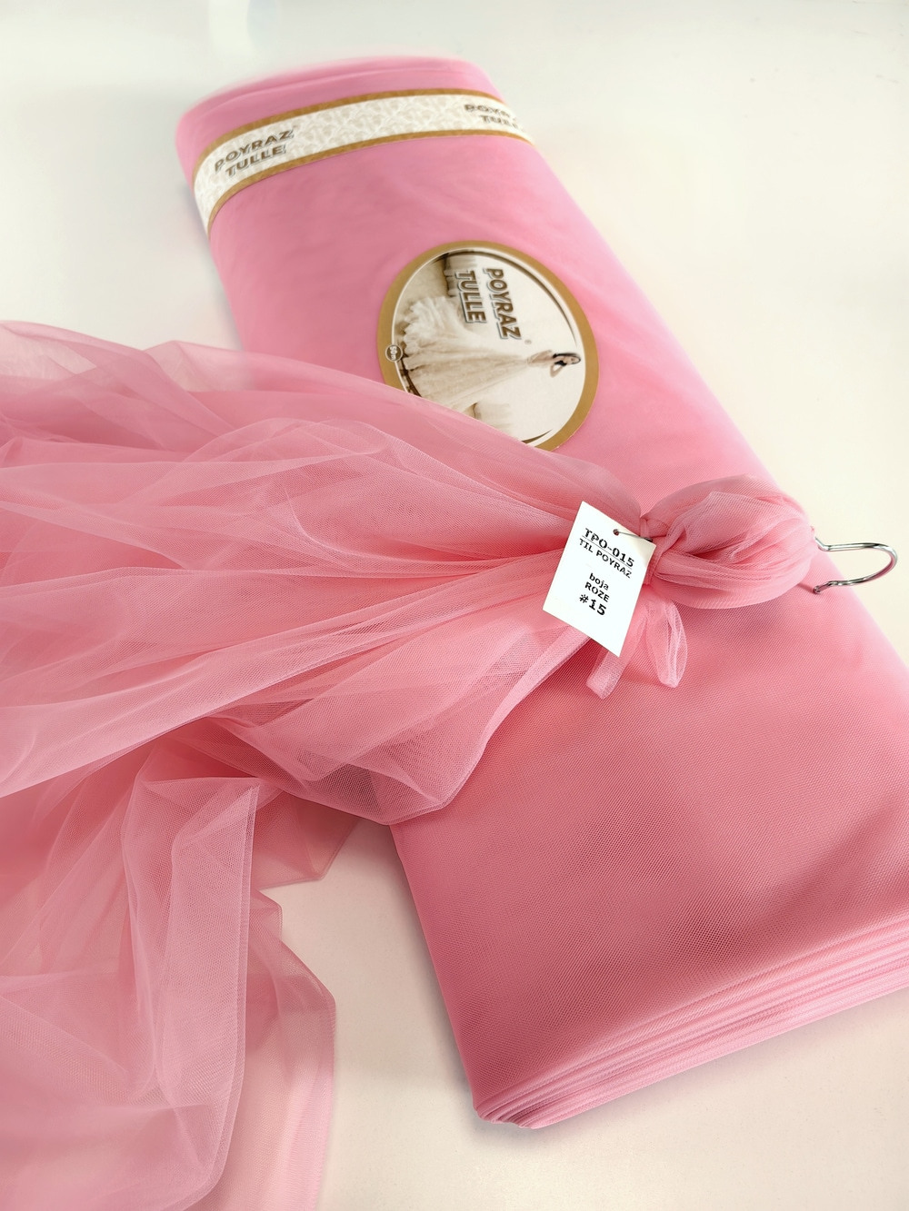 Til Poyraz boja Roze je lagan, lepršav, providan, mat, nje skup. Na raspolaganju je široka paleta boja. Koristi se za dekor svadbe i proslava, kućni dekor, baldahine, haljine, suknje, kostime etc.