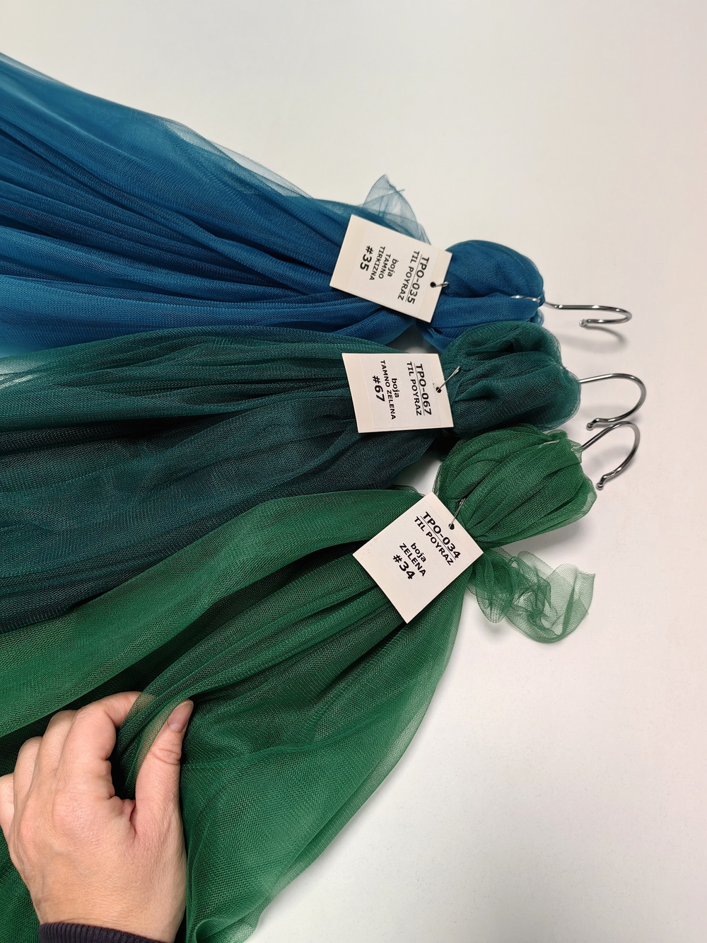 Til Poyraz boja Tamno zelena je lagan, lepršav, providan, mat, nje skup. Na raspolaganju je široka paleta boja. Koristi se za dekor svadbe i proslava, kućni dekor, baldahine, haljine, suknje, kostime etc.